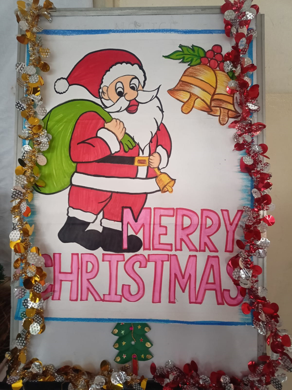 The boards in the school corridors were decorated with beautiful art work of Santa Claus and X’mas