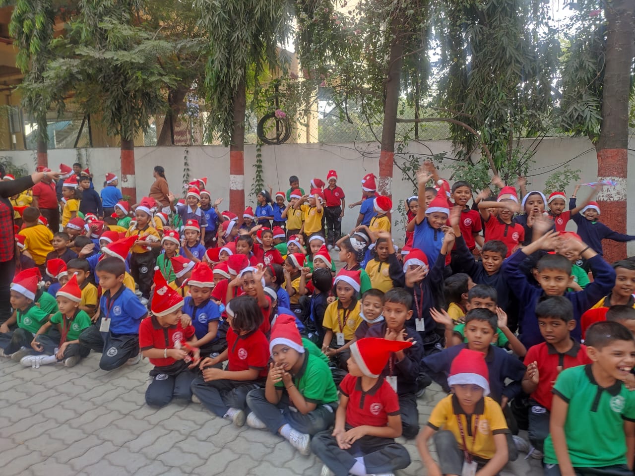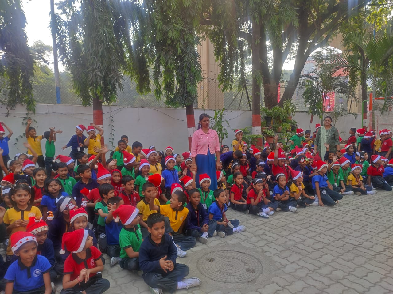 Christmas Carols were played on the occasion of celebration. Students happily adorned Santa Caps
