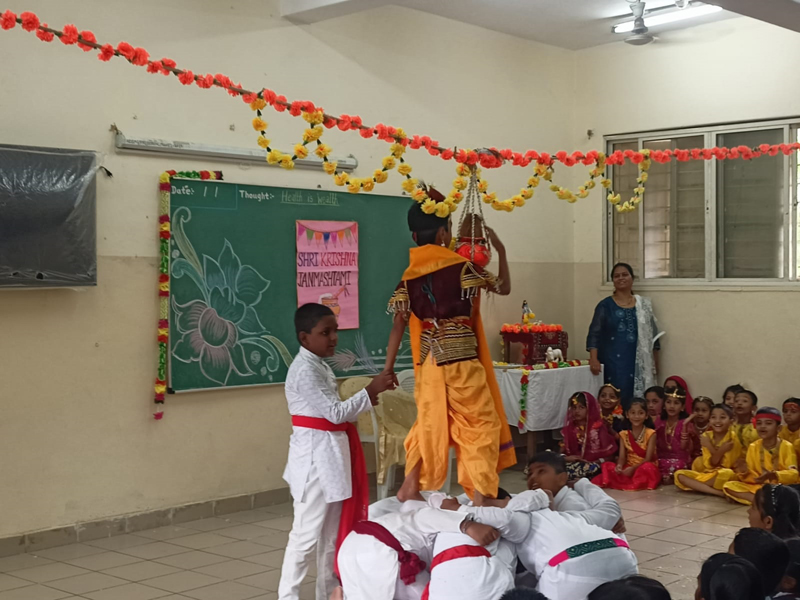 The birth anniversary of Lord Krishna was celebrated at school with great enthusiasm on 8 th