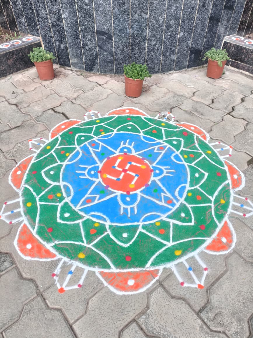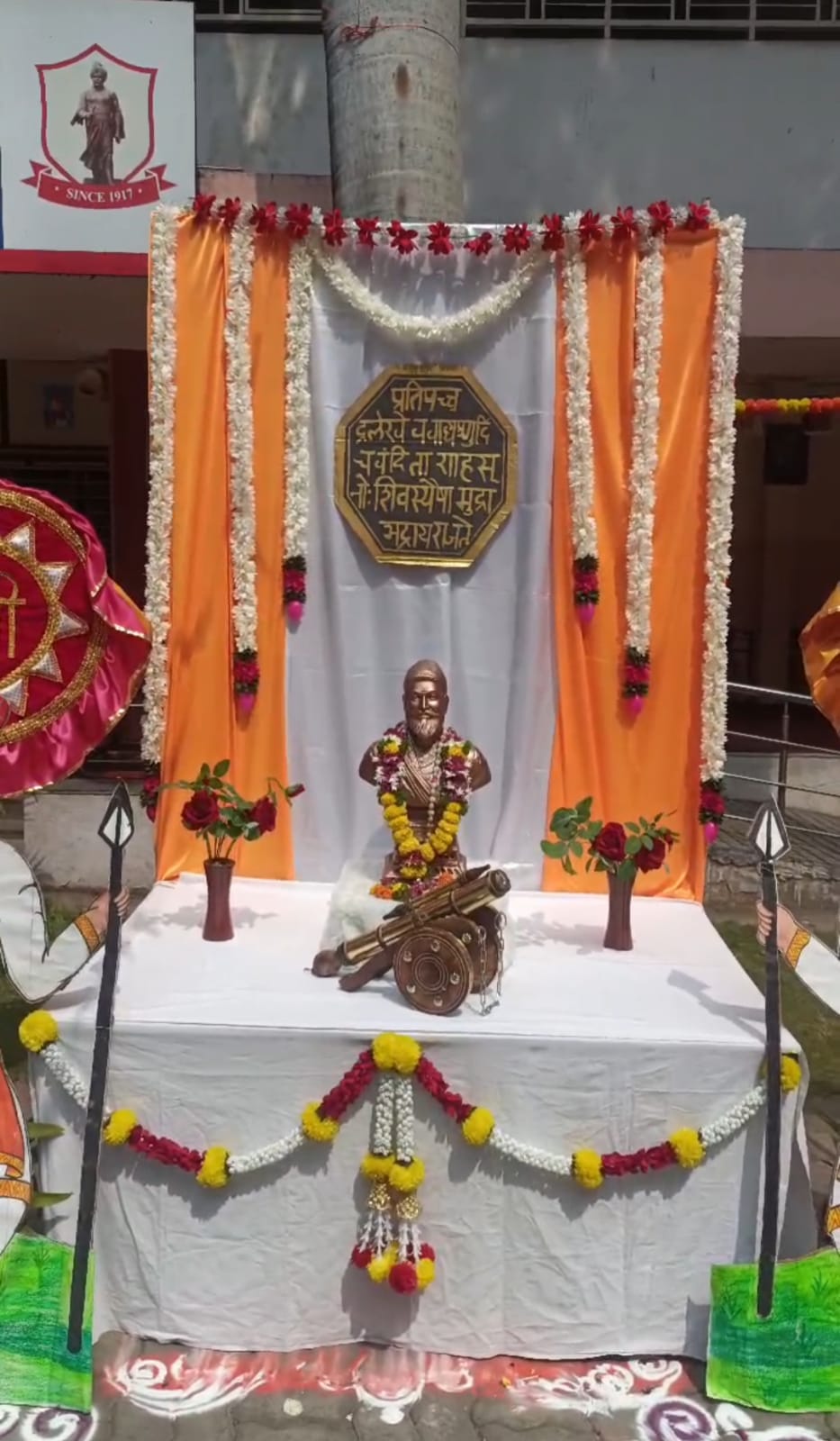 The celebration of Shiv Jayanti at AISSMS SSPM Nursery and Primary Day School was conducted with great enthusiasm and patriotic spirit. The entire school premises were beautifully decorated with vibrant orange streamers, creating a festive and energetic atmosphere. The decorations were thoughtfully aligned with the theme of the program, featuring the idol of Chhatrapati Shivaji Maharaj, Mavalas cutouts, the royal seal, and other historical elements that reflected the grandeur of the Maratha era. A colourful and artistic rangoli further enhanced the beauty of the venue.