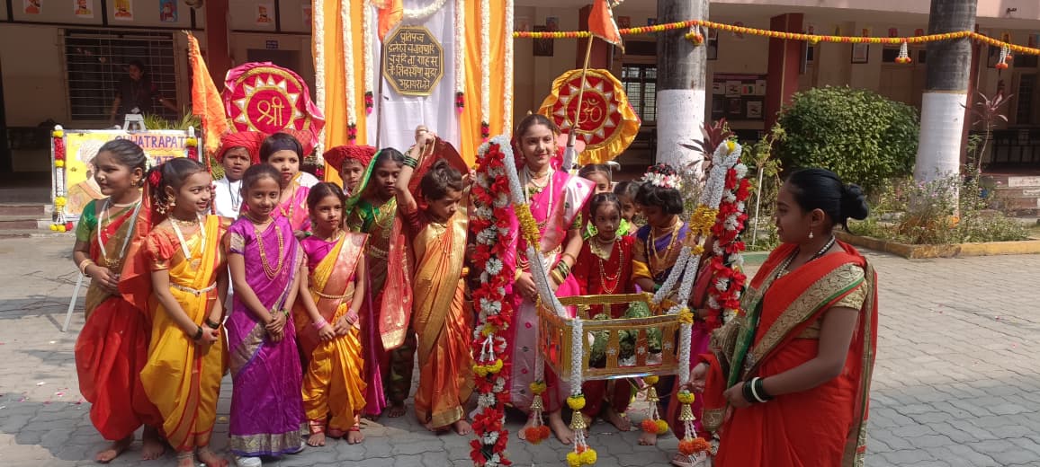 The program began with the Honorable Headmistress garlanding the statue of Chhatrapati Shivaji Maharaj, paying tribute to the great warrior king. Students then staged a heart-touching enactment of the naming ceremony of Shivaji Maharaj by portraying Jijabai, accompanied by traditional songs sung around the cradle, which captivated the audience.